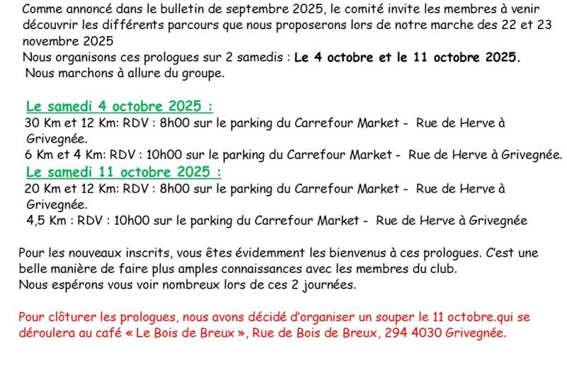 Informations concernant notre marche du 22 et 23 novembre 2025